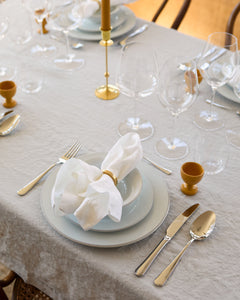 On weekdays, we eat at our small café table in the kitchen, as it's rarely possible to sit down at the same time now that we have a baby. Then I want simple but beautiful porcelain that is quick to set up. On weekends, friends often come over spontaneously, and it's the same – simple and preferably homemade pizza or a large pasta on a platter. One thing that is never compromised is the wine glasses – they should always be beautiful even on weekdays. On the other hand, I take holidays very seriously and then the dining room is set up very carefully. I iron tablecloths, have napkins, several glasses, and flowers on the table. Filling the house with family and relatives is one of the best things I know – and seeing several generations in the family socialize fills me with joy for days afterwards.