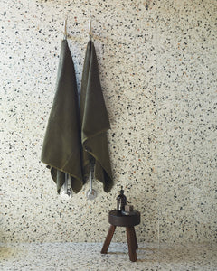 The fabric is much thicker and more luxurious than what you typically find even in hotels, and no matter how many times I wash them, they fluff up and look new. I also love that they are extra large, so you can wrap yourself in them. When I have guests at home, they often comment on how lovely the towels are after washing their hands.