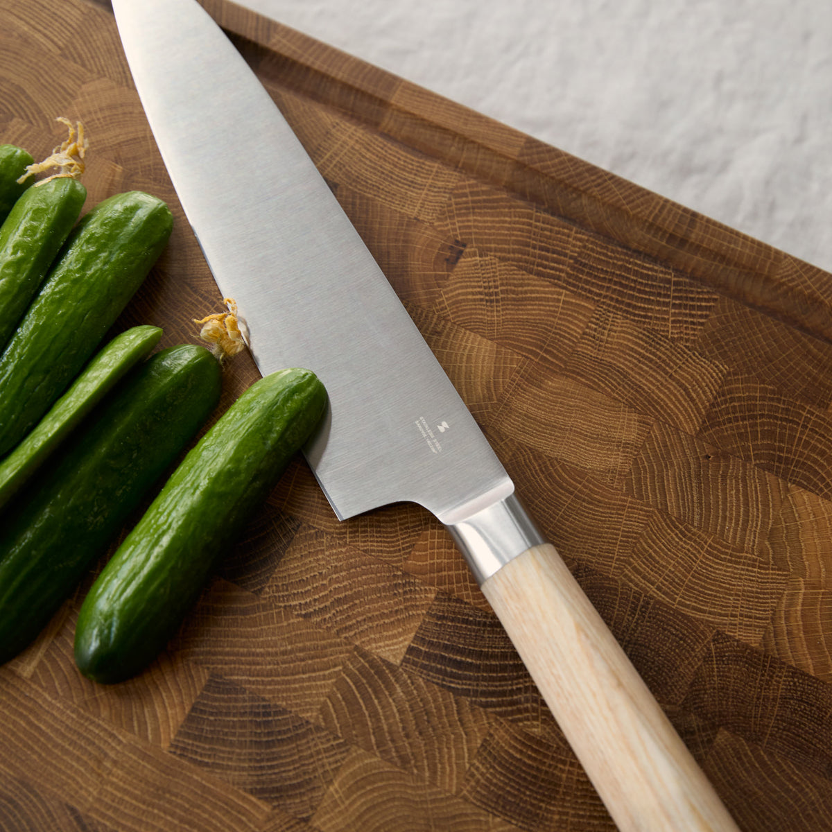 The design of this unique piece of handcraft, combined with the length of the blade, gives it the perfect balance when working with everything from meat to vegetables. If you’re going to buy only one knife in life – this might just be the one.