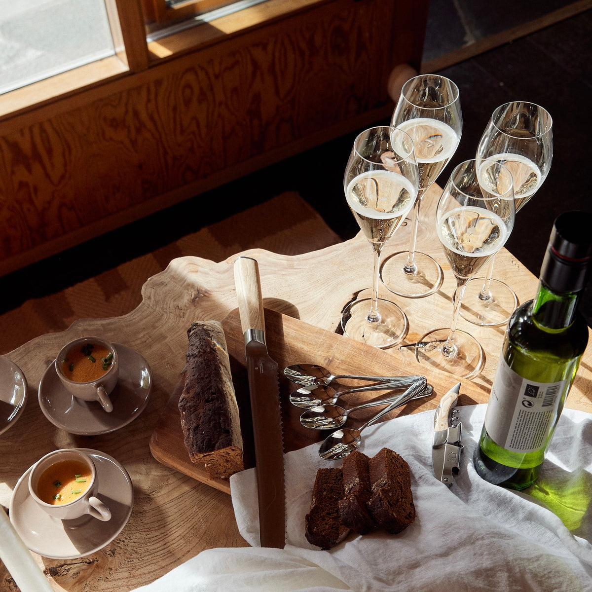 This Crystal Champagne Glass combines functionality and aesthetics to perfection. Even though we all love the look and feel of a 1920s champagne coupe, unfortunately they are not very practical (or good). This champagne glass is designed with a generous waist space for the champagne's bubbles to develop and rise, while trapping the flavours and keeping the temperature. It’s as thin as a glass can be, and thanks to the laser-cut rim the aroma from the beverage is preserved to the max.