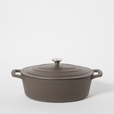 The durable cast iron material is an unparalleled heat conductor and the inside has been applied with three layers of scratch-resistant enamel.
