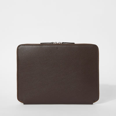 Made from the highest quality of full-grain leather and hand-stitched to perfection by master craftsmen. This padded laptop case comes with a 2-way zip-opener, 2 inner pockets with space for A4-paper and a cotton-twill inner lining. This Full-Grain Leather Laptop Case will only grow smoother and become beautifully patinated over time, thanks to the uncompromising level of leather quality and craft.