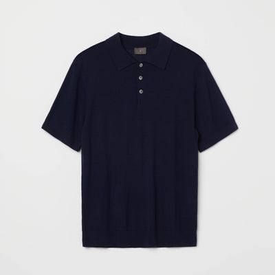 Timeless style meets conscious craftsmanship in this Men's Short Sleeve Knit Polo. Crafted from 100% superfine non-mulesed merino wool in a 16-gauge, 1-ply quality from Italian Greenport, this polo is sleek and soft, yet incredibly cozy. Carefully crafted with the utmost attention to detail, it features a regular fit, Padano Troca buttons, and a 1x1 rib at the sleeves and bottom hem. With a full needle collar and a clean placket with a three-button closure at the front, it effortlessly transitions from casual outings to more formal occasions.