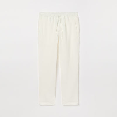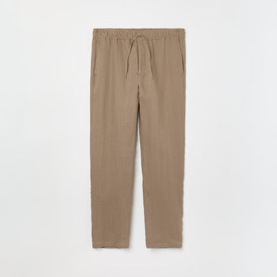 Linen is more durable than cotton, it’s incredibly easy to care for, and it’s moisture-wicking making it very breathable and always cool to the touch. This linen is derived from European flax plants which makes its fibres tougher to break down, resulting in a pair of trousers that only gets better with time. Flax needs no irrigation, rainwater is enough for it to grow so growers use fewer fertilisers which makes linen a beautifully natural material that’s easy to love.