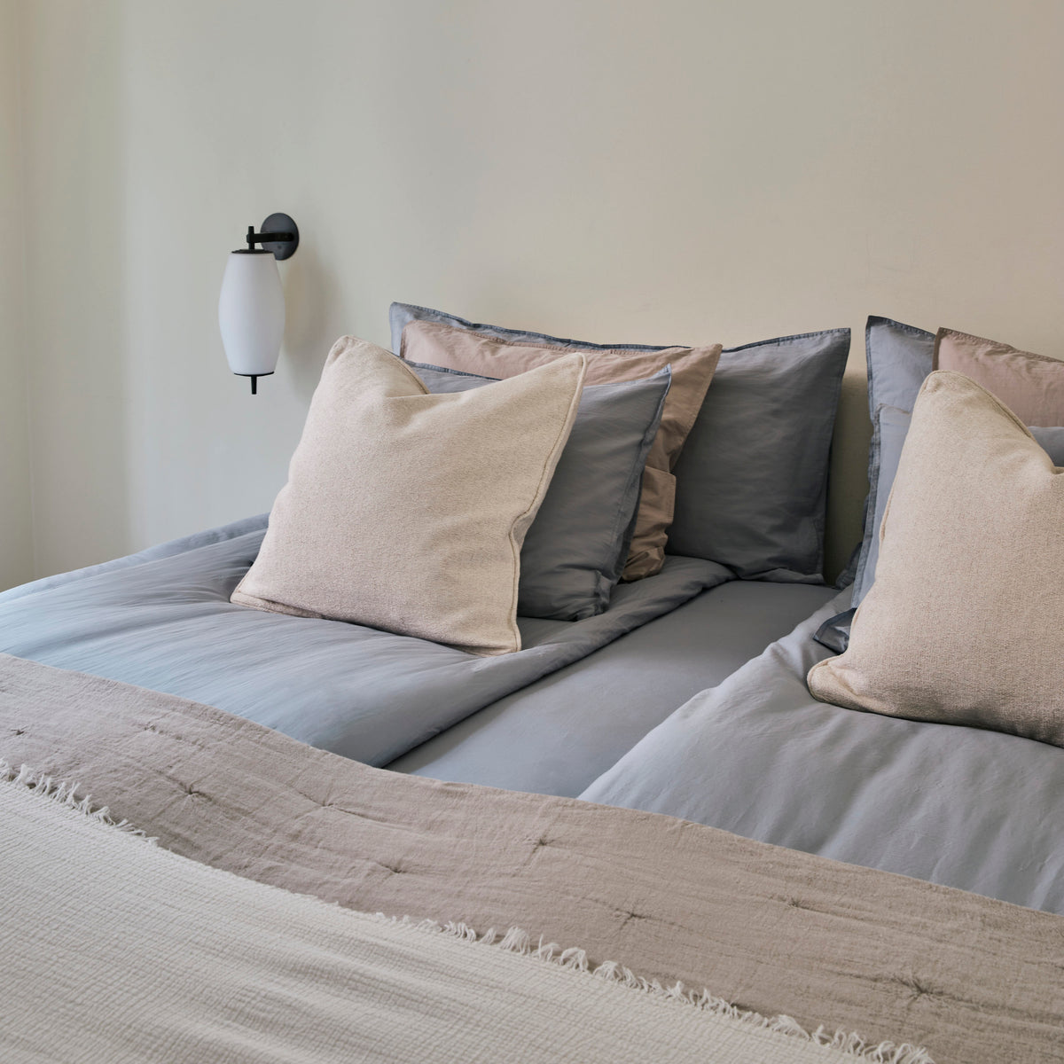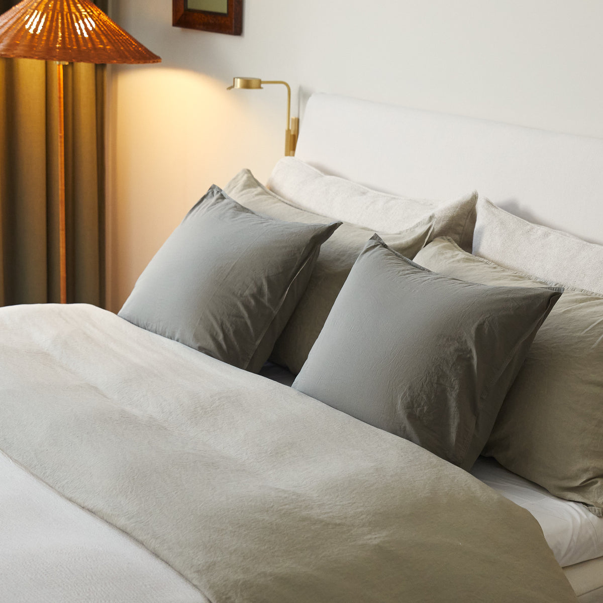 The Percale Pillow Cover is light and soft to the touch with high breathability and a bohemian look and feel. These pillow covers look and feel just as good pressed as unpressed, it’s completely up to you. Our version is made from a uniquely developed extra-thin thread of organic pima cotton, woven with an extra-high thread count of 320 into a fabric that is so thin and soft that it almost feels like it floats on top of your body, rather than lying on top of it. They come in a stonewashed finish that creates a tiny eggshell effect as well as adds that last bit of magic to their unparalleled softness.
