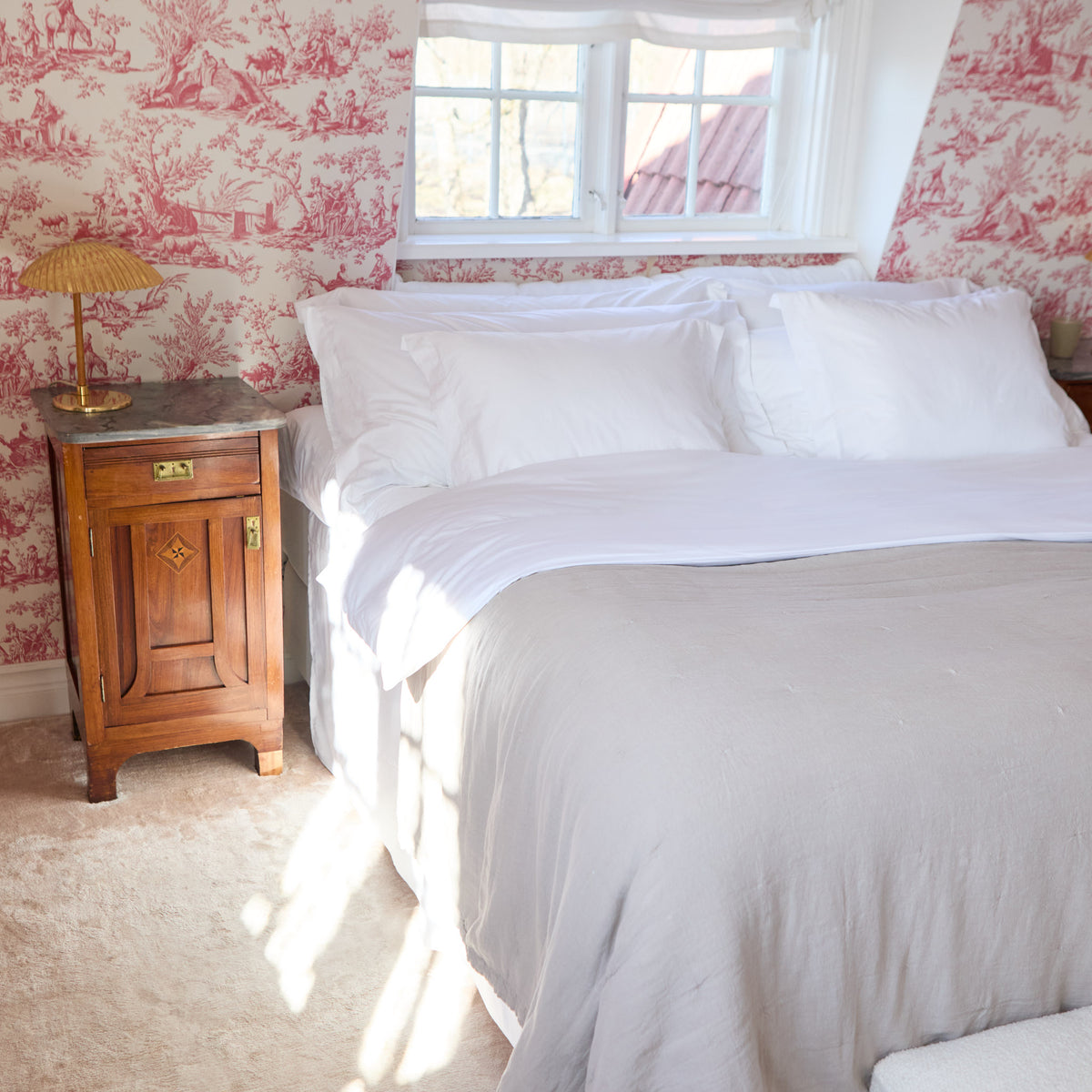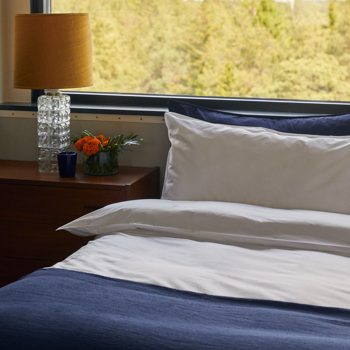 The eternal question: sateen or percale bed linen? If you are after the classic luxury hotel experience, always opt for high-quality sateen. Percale has high breathability and a light and airy touch, with a more bohemian look-and-feel that looks just as good pressed as it does unpressed.