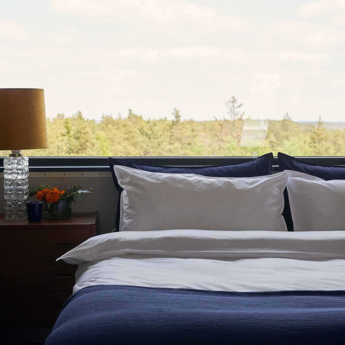 The iconic luxury hotel bed linen comes with an extremely high thread count (450) and is entirely made from organic Pima cotton for both extra comfort and a clean conscience
