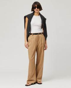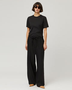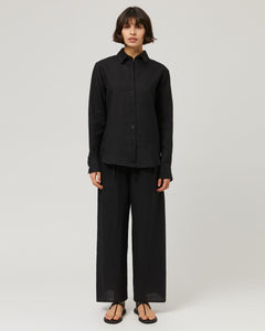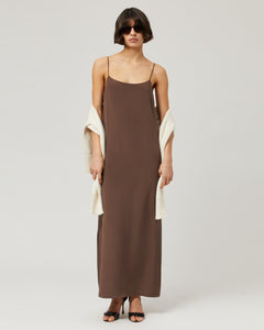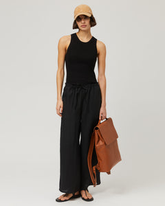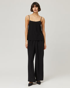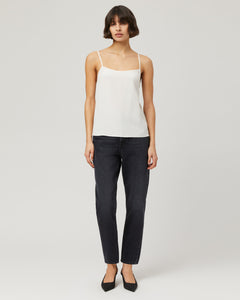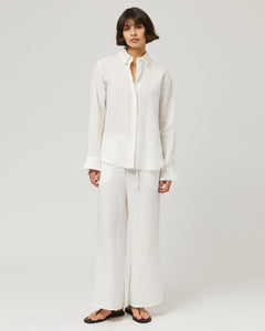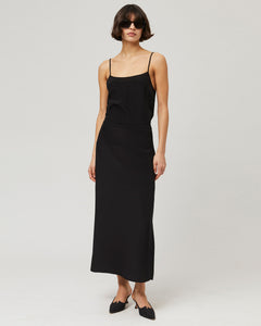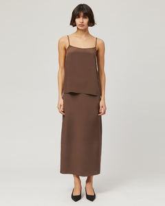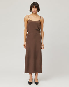 For our silk garments we work with high-quality Mulberry silk – one of the most luxurious materials there is. Our Mulberry Silk program consists of a relaxed shirt with mother of pearl-buttons, a straight wide-leg drawstring trouser, a midi skirt, a spaghetti strap top and a long, strapped dress.