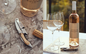 The Singular Society House wine collection is an exquisite selection of red, white, sparkling and rosé wine. Above: Côte de Provence Rosé 2021 and Wine Opener Pakkawood.
