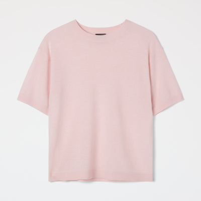 Indulge in everyday elegance with our Cashmere Silk Blend Short Sleeve T-Shirt. Crafted from a luxurious blend of cashmere and silk in a fine 14-gauge 1-ply knit, this round neck tee offers a relaxed fit and incredible softness for ultimate comfort. The ribbed bottom hem, sleeves, and neck endings add a touch of texture and sophistication. Care for it and it will last for many seasons to come.